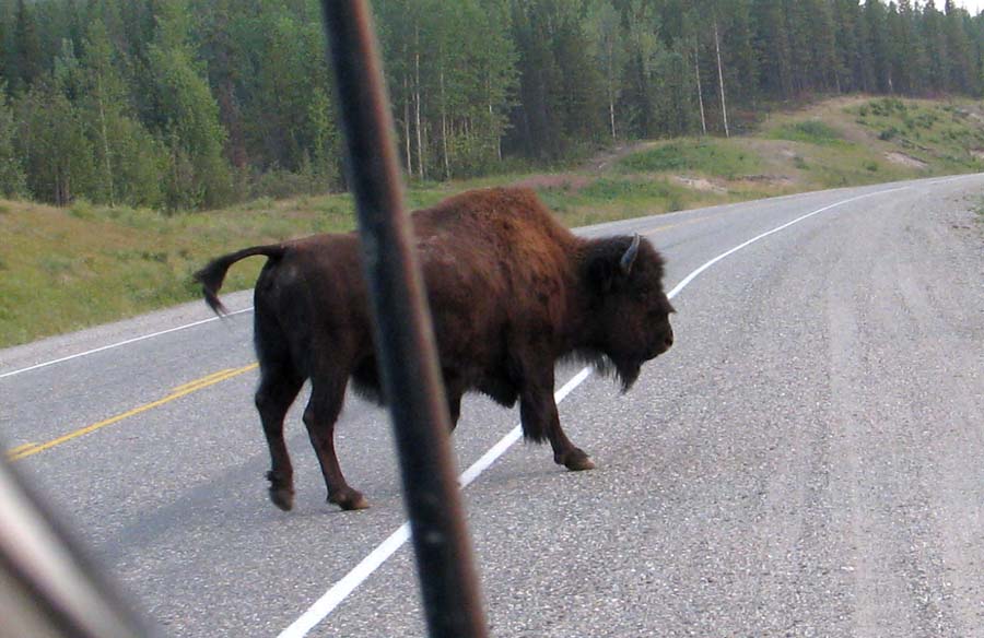 About 1 mile south of Watson Lake we saw this HUGE bison taking a dirt bath on the side of the highway! He was totally uninterested in us as we pulled over on the shoulder of the road to take his picture.