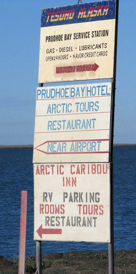 There are no public outhouses or tent-camping areas. There is no public road access to the Arctic Ocean at Prudhoe Bay, and in order to get to the coast, you must sign up with a tour at the Arctic Caribou Inn. There are security gates operated by the oil companies that block passage out to the Ocean.